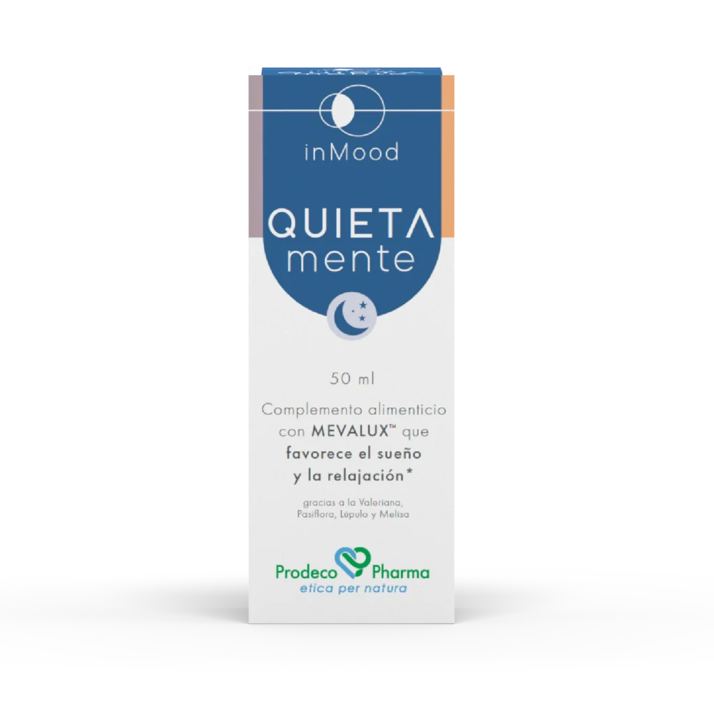 inMood QUIETAmente es un complemento alimenticio en gotas con MEVALUX™, una mezcla exclusiva de extractos vegetales que actúan en sinergia para ayudarte a dormir mejor.